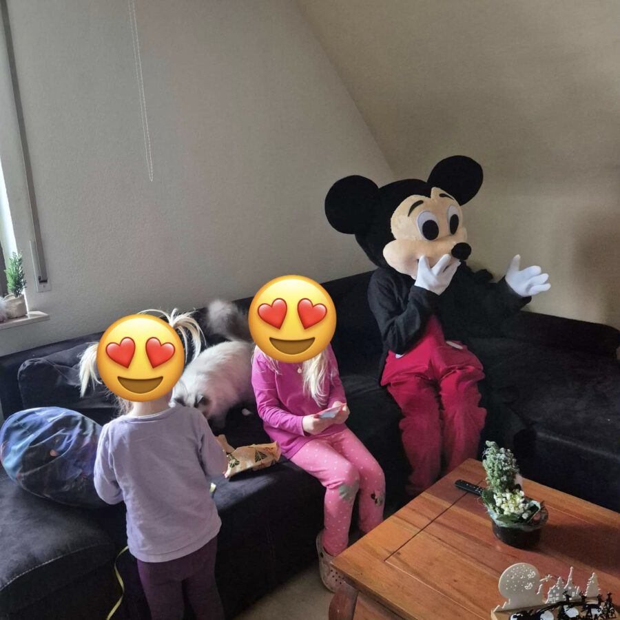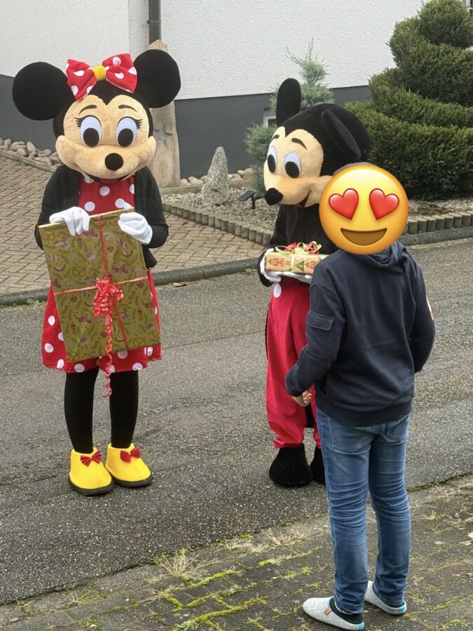 15. Dezember 2025Die Firma Bellarinas-THE ART OF PEOPLE aus Baden-Baden hat für die Kinder und Familien, die wir begleiten eine wundervolle Überraschung organisiert. Mit viel Herz wurden die Wünsche der Kinder organisiert, verpackt und dann auch noch persönlich überreicht. Das Highlight hierbei war, das die Übergabe in einem Mickey Mouse und Minnie Mouse Kostüm stattgefunden hat.